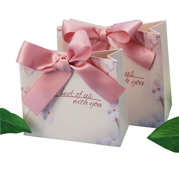 Bolsas de joyería con logotipo personalizado, bolsas de papel para regalo de boda con cinta para dulces
