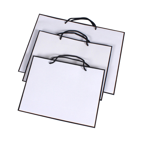 Bolsa de compras de papel de Boutique de lujo, cartón personalizado, bolsas de papel Kraft blanco promocional, Logo impreso